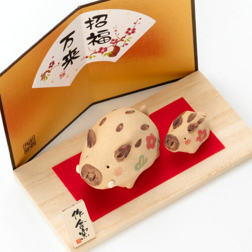 正月干支飾り 亥 なかよし親子飾り (K19-28) 工房SAO 瀬戸焼 Setoyaki Pottery ornament, New Year's decoration