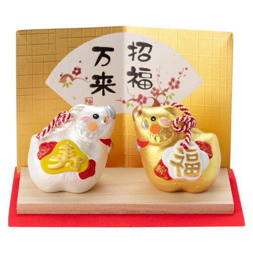 正月干支飾り 亥 金銀飾り (E-20) 柚舎 瀬戸焼 Setoyaki Pottery ornament, New Year's decoration