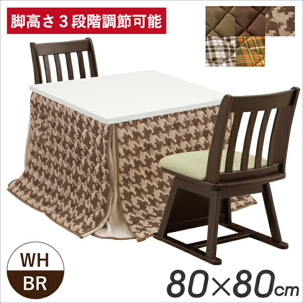 ) サイズ ダイニングこたつ本体:幅80/奥行80/高さ68・53.5・39cm チェア:幅43/奥行49/高さ74(座面高39)cm 表面材 こたつ:MDF(PU塗装)チェア:アカシヤ材(ラッカー塗装) カラー こたつ本体:ホワイト・ブラウン色チェア:ブラウン色布団:5種類 備考 輸入品/組立品 アクシス80こたつ 睦月2回転式チェア こたつ:MHU-601E手元コントローラー 2人掛けダイニングこたつ4点セット。